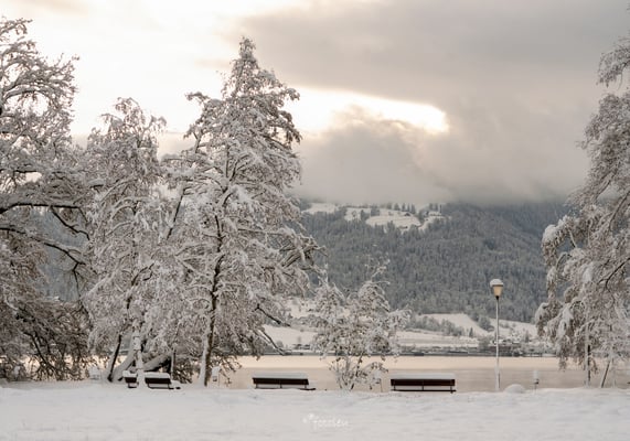Auf dem Weg ins Studio konnte ich einfach nicht widerstehen: Ich musste einen Zwischenstopp im Villettenpark in Cham einlegen, neugierig darauf, wie dieser Ort wohl im Schnee aussehen würde.